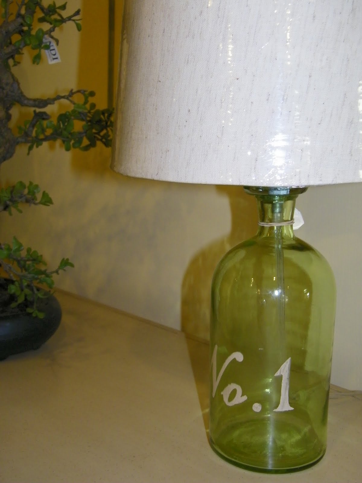 I saw quite a bit of french influenced pieces like this cool lettered glass bottle lamp.